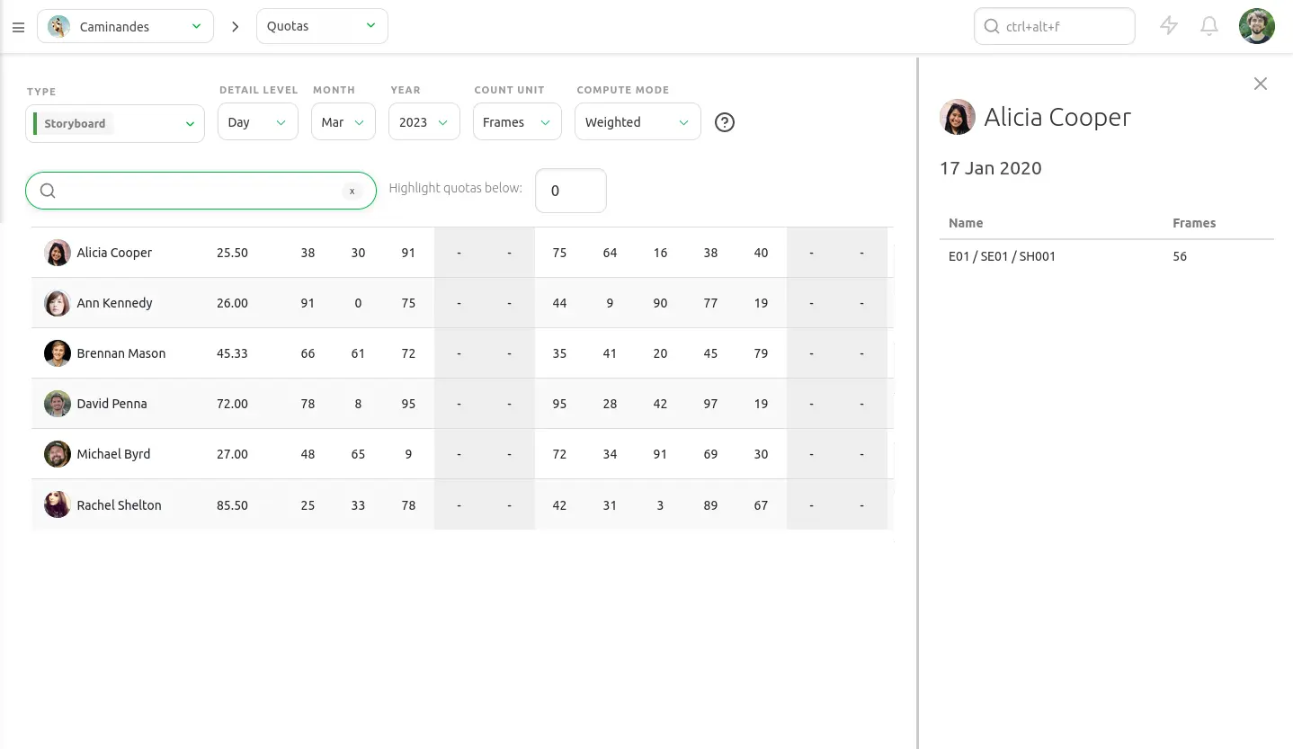 Monitor the productivity of your artists and ensure that no one is blocked. Set productivity goals and ensure quotas are met.